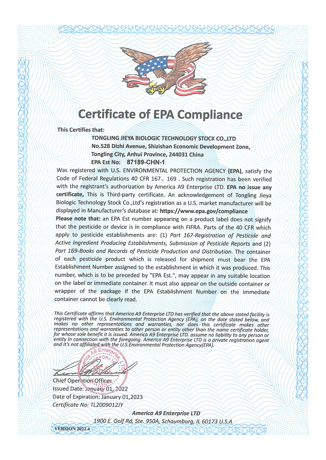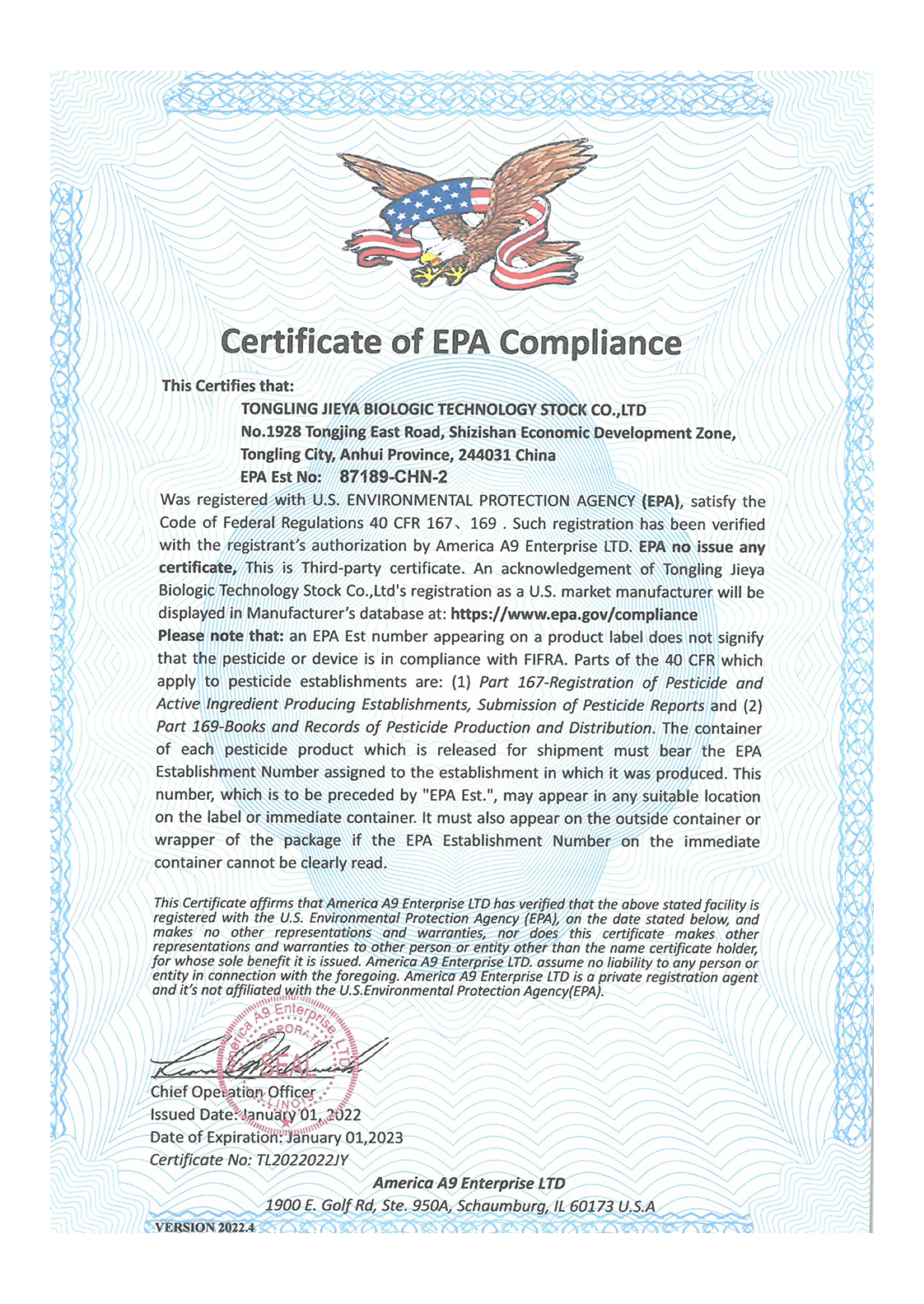 二厂EPA证书